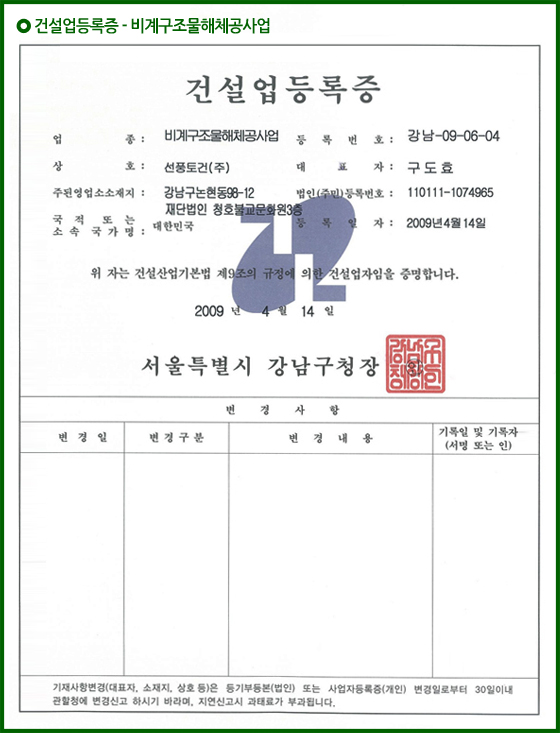 건설업등록증 - 비계구조물해체공사업